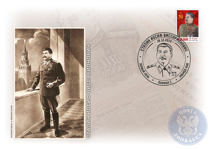 В так называемой «ДНР» 18 декабря выпустили почтовые марки с портретом Иосифа Сталина. Марка с изображением Сталина была выпущена в рамках серии «Великие люди», а дата ее ввода в обращение приурочена к его дню рождения.