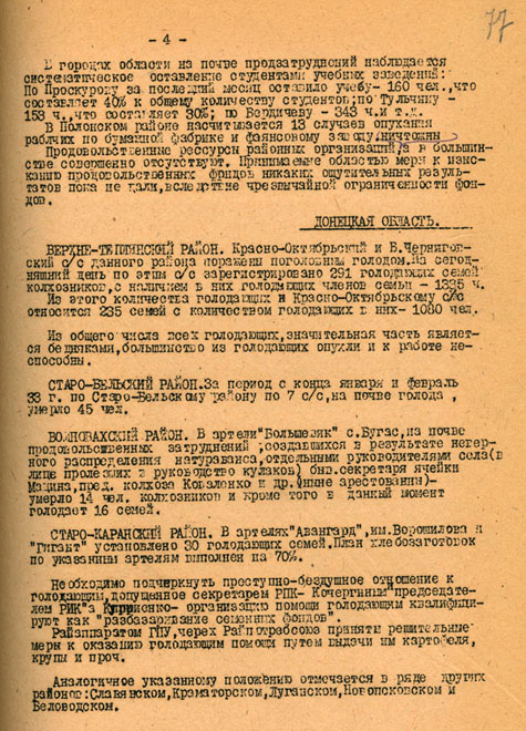 Голод в Украине, сов. секретный бюллетень ГПУ. Источник: Генеалогический форум ВГД