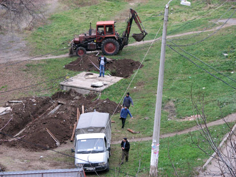 Выглядело это так: двое сидели и дымили сигаретами, третий, самый молодой, дистрофично ковырял что-то в ямке лопатой, и с каждым броском добавлял вверх, на бруствер траншеи, землю объемом примерно со спичечный коробок. Потом он, изнемогши, тоже сидел и курил, а затем пришло время обеденного перерыва. На пищеблок рабочие отбыли на прибывшей за ними «вахтовке», а после на объекте не появились вовсе. До следующего утра.