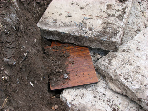 Потом накрыли всё это плитами и прирыли сверху. Чтобы ржавое ночью не унесли воры.
