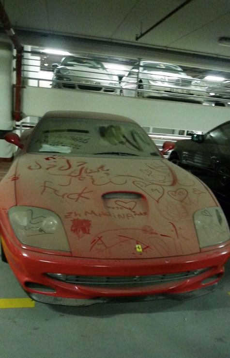 Бесчисленные Феррари, Порше, БМВ, Мерседесы и более скромные автомобили стоят бесхозными на автомобильной стоянке Международного аэропорта Дубая. На лобовых стёклах некоторых машин хозяева оставили кредитные документы и записки с извинениями. Некоторые оставлены прямо с ключами, и всё равно никому нет до них никакого дела.