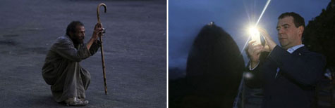 2012 год. Слева: участник волнений в Каире. Справа: президент Медведев в Рио-де-Жанейро: