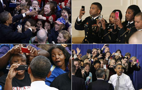 …И высшая элита страны, уже дважды собиравшаяся на инаугурационный президентский бал, поголовно вооружась самыми дорогими смартфонами мира.