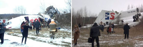 Его фюзеляж разваливается на куски, двое погибших, есть раненные. Но все, кто смог сам выйти из самолета, достают мобильники и прежде всего остального — подробно снимают обломки.