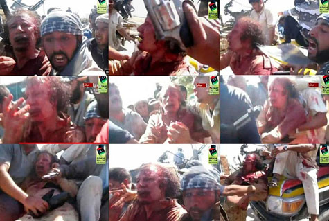 Последние минуты жизни бывшего ливийского лидера Муамура Каддафи сняты на мобильное устройство кем-то из захвативших его повстанцев