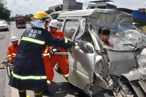 Китай, провинция Гуанси. Прибывшие на место ДТП спасатели изумились увиденной картине: из лобового стекла автомобиля торчала... голова женщины. Дама была жива и почти невредима, и лишь растерянно хлопала глазами.