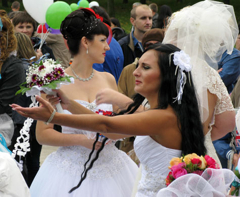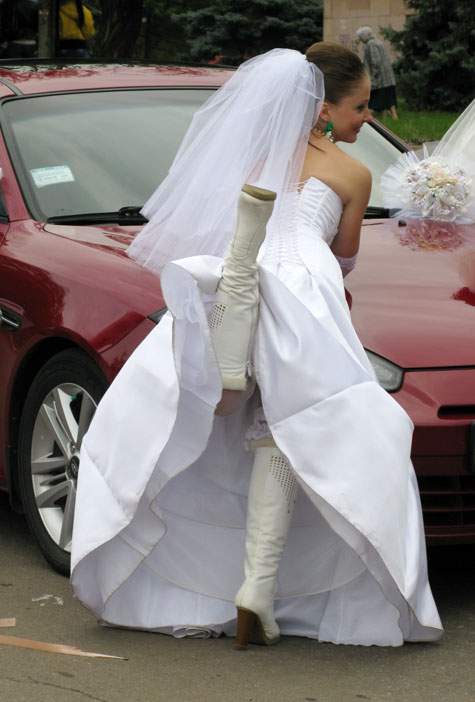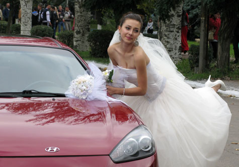 После официальной части, невест потянуло к красивым тачкам. Женщины!..