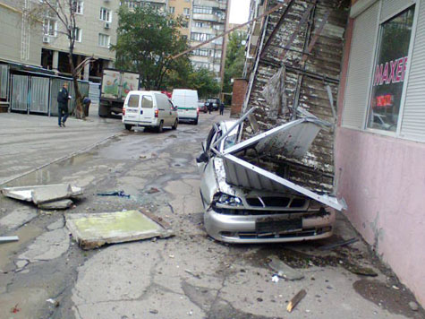 Плиты упали на «Daewoo Lanos», припаркованный возле дома.