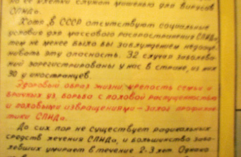 "Хотя, в СССР отсутствуют социальные условия для массового распространения СПИДа, тем не менее было бы заблуждением недооценивать эту опасность. 32 случая заболевания зарегистрированы у нас в стране, из них 30 у иностранцев".