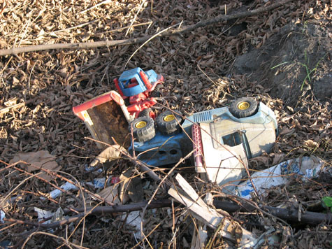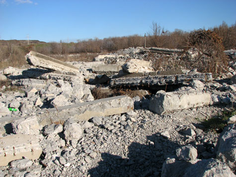 Канавы и траншеи засыпаются строительным мусором со всего города. Это, например, - все, что осталось от рухнувшего здания общежития на улице Горького.