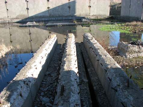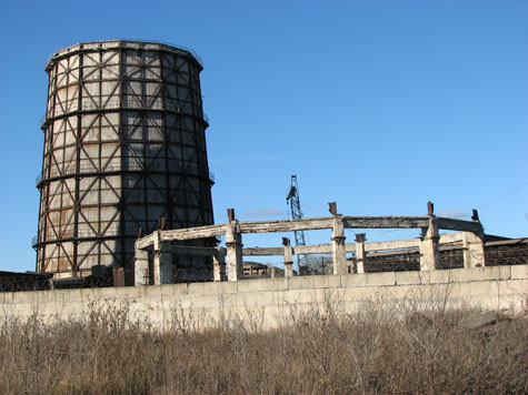Вокруг трубы когда-то возвышались железобетонные корпуса будущей станции высотой в несколько этажей. Когда стало ясно, что станции не будет, сначала здания разбирали те, кто их строил.