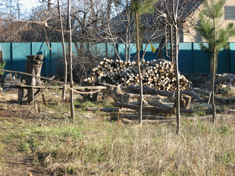 Дикая поросль, выросшая на месте жилых домов, идет на отопление.