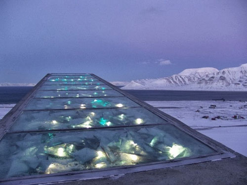 Норвежский художник Дивек Сэйнн был уполномочен сделать легкую установку и спроектировать вход в семенохранилище. Крыша и вход в хранилище пестрят отражающей нержавеющей сталью, зеркалами и призмами. Установка действует как маяк, отражая полярный свет в летние месяца, в то время как зимой, сеть из 200 стекловолоконных кабелей дает сооружению приглушенный зеленовато-бирюзово-белый свет.