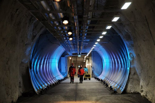 Хранилище построено на 120 метров внутрь горы песчаника на острове Шпицберген. Местоположение считали идеальным из-за его уединенности и вечной мерзлоты, которая поможет сохранению. Будучи расположенным 130 метров над уровнем моря, оно гарантированно остается сухим, даже если ледниковые покровы тают.