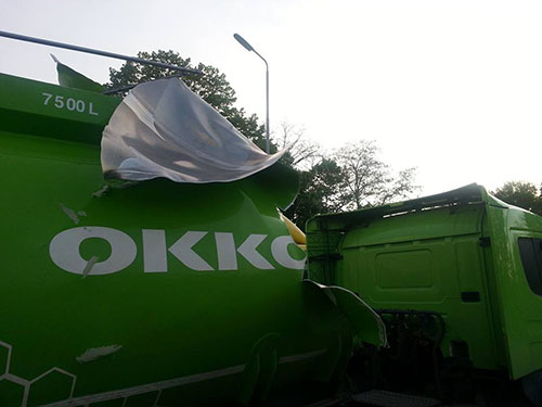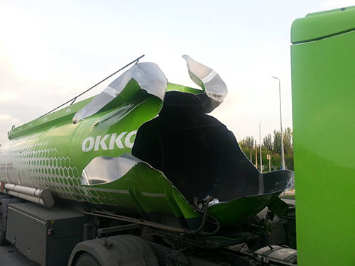 По информации автора, два бензовоза принудительно остановили и поставили поперек дороги на мосту в районе завода "Энергомашспецсталь".
