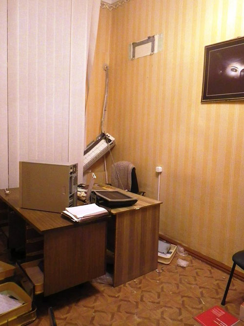 Сотрудник редакции Роман Бедило написал у себя в Фейсбуке: "Был на конторе, на месте происшествия. Ну что сказать, ребята поработали в прямом смысле ударно. Аквариум, конечно, можно было не трогать... Из пяти рыбок выжили три...