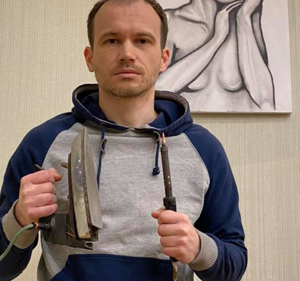 Денис Малюська поздравил сотрудников Государственной исполнительной службы с их профессиональным праздником, держа в руках утюг и паяльник.