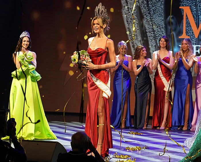 Під час свого тріумфу вона була одягнена в сукню червоного кольору. Корону їй вручала попередниця Она Муді, а також чинна Міс Всесвіт Р'Бонні Габріель зі Сполучених Штатів Америки.
