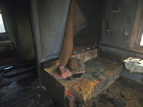 По прибытию на место происшествия выяснилось, что пожар возник в нескольких комнатах жилого дома, в одной из которых, на диване, был обнаружен хозяин помещения со значительными ожогами.