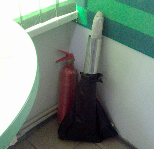 На место происшествия прибыли стражи порядка, персонал и посетители банка были эвакуированы. Однако выяснилось, что тревоги были напрасны: после обследования подозрительной находки, было установлено, что угрозы она не несет – в пакете находились... швабра и мусор.