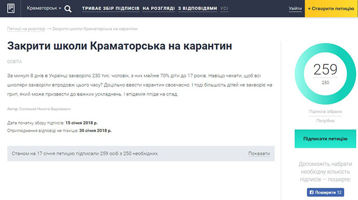В рекордные сроки - за полтора суток - в Краматорске собрала необходимое количество подписей официальная петиция с требованием закрыть городские школы на карантин.
