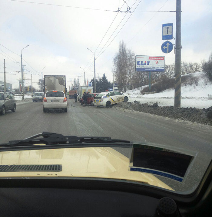 Утром 5 марта в Краматорске, на магистральной улице О. Тихого, произошло ДТП с участием автомобиля полиции.