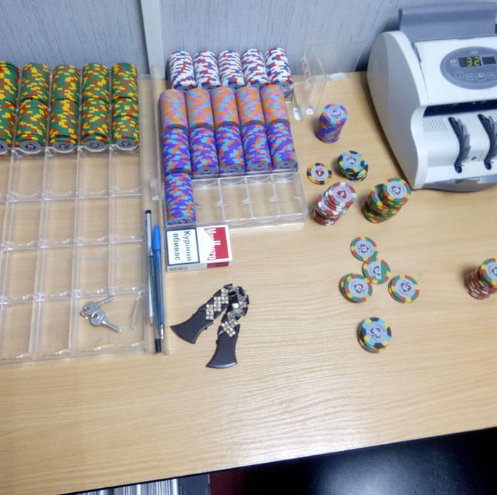 Во время проведения санкционированных обысков, в подпольных заведениях изъято 13 покерных столов и одну рулетку, фишки для игры, денежные средства в сумме свыше 100 тысяч гривен, черновые записи, компьютерную технику и электронные носители информации.