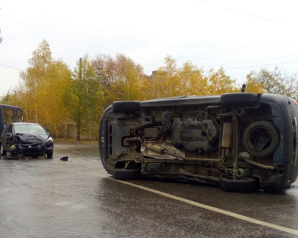 Сегодня в Краматорске, на улице Хабаровской, около 11 часов дня произошло столкновение автомобилей "Пежо" и "Хонда", в результате которого одна из машин оказалась лежащей на боку.
