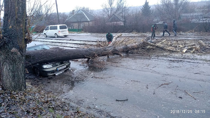 На улице Центральной в Краматорске 25 декабря произошло дорожно-транспортное происшествие, причиной которого стало упавшее поперек дороги дерево.