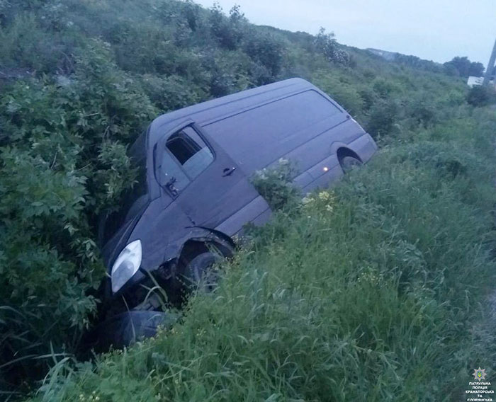 Покинув место первого происшествия, водитель микроавтобуса вылетел в кювет.