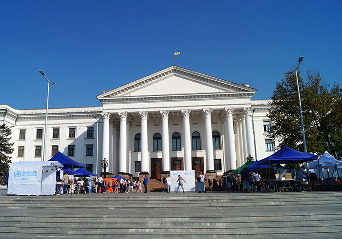 На центральной площади Краматорска кипит жизнь: здесь разворачиваются многочисленные палатки организаций-участников акции в честь Всемирного дня гуманитарной помощи. У ступенек ДКиТ НКМЗ можно увидеть палатки с названиями известнейших в мире организаций, а люди внутри этих сооружений улыбчивы, контактны и готовы поделиться справочной литературой и личным опытом со всеми желающими.
