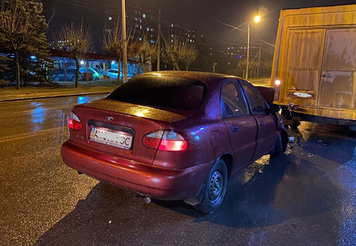 Около 9 часов вечера 27 декабря на бульваре Краматорском, неподалеку от перекрестка с улицей Дружбы, произошло дорожно-транспортное происшествие: водитель автомобиля "Дэу Ланос" врезался в заднюю часть стоящего на остановке микроавтобуса 32-го маршрута.
