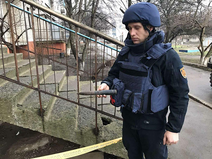 Прибыв пор месту вызова, специалист-идентификатор взрывоопасных предметов в составе дежурного караула 12-го Государственного пожарно-спасательного отряда подтвердил, что у подъезда находится артиллерийский снаряд.