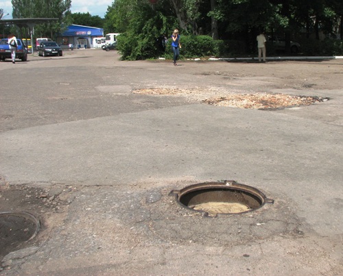 Видя, что происходит на этом участке дороги, так и тянет помечтать о том, чтобы ялтинская техника не останавливалась, и столь же успешно шагала и дальше, по всему городу. Но увы. Уже сразу за зданием автовокзала, по бульвару Машиностроителей, глазу открывается привычно-жуткое зрелище: присыпанные битым кирпичом ямищи, открытый люк посреди проезжей части… Придет ли когда-нибудь цивилизация и сюда?..