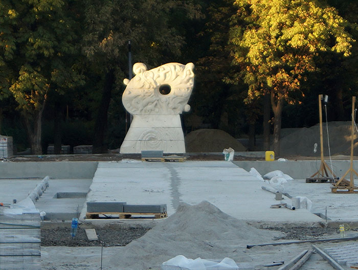 Первый, более крупный объект - «Коло Життя» - уже представлялся журналистам и членам градостроительного совета города "на бумаге" еще в 2016-м году, как часть ансамбля из 6 колонн с фигурами наверху под «Відлуння Скіфії» (другое название композиции "Ворота. Лабиринт"). Однако, если с "Воротами" все получилось достаточно быстро, то насчет «Коло Життя» члены арх-градсовета попросили повременить, и подождать капитальной реконструкции всего сквера.