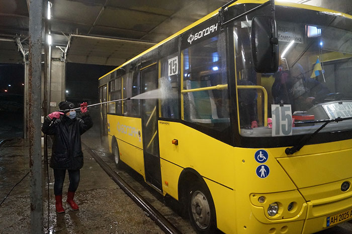 Вечером 19 марта руководство Краматорского АТП 11410 пригласило на территорию предприятия журналистов, чтобы показать, как производится санобработка транспорта в хозяйстве. Заместитель директора предприятия по пассажирским перевозкам Андрей Безуглый не скрывал: гостей с видеокамерами и фотоаппаратами позвали, отреагировав на высказанную в соцсетях критику в адрес АТП. "Погодные условия сказываются и на внешнем, и ну внутреннем виде автобусов, грязь посреди рабочего дня никуда не денешь, но вы сами можете убедиться, как тщательно на АТП относятся к вопросу санобработки автобусов", - заявил Андрей Безуглый.