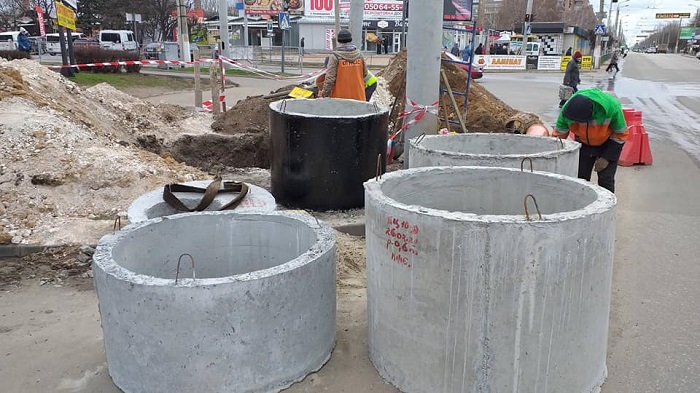 На пересечении улиц Парковой и Юбилейной в Краматорске силами КП УРСАС завершаются работы по строительству дождеприемного и смотрового колодцев ливневой канализации.