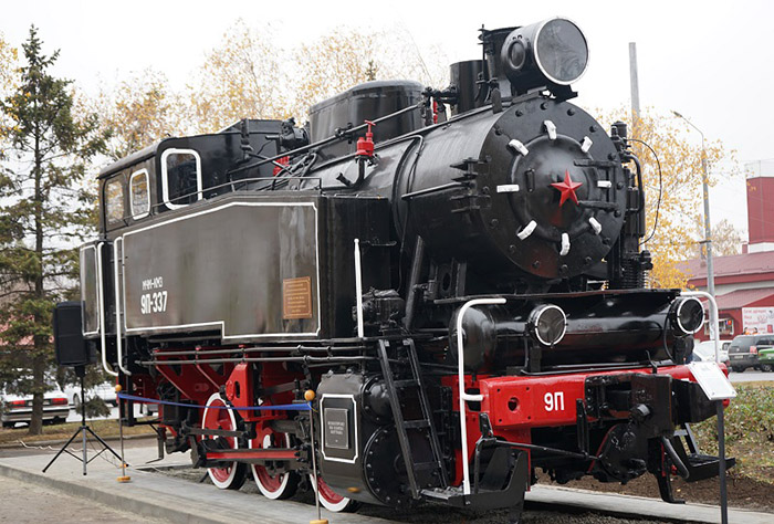 Памятный знак "Паровоз 9П-337" оснащен прожекторами, которые будут светиться в вечернее время.