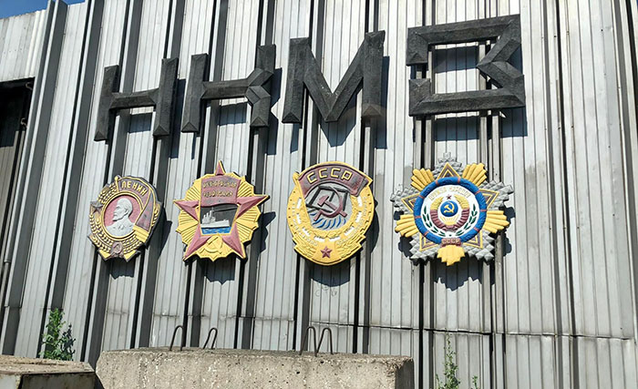 "Советская" символика, до недавних пор размещавшаяся на стеле неподалеку от проходных Новокраматорского машиностроительного завода в районе пересечения проспекта Мира и улицы О.Тихого, была демонтирована 12 июня этого года. Однако, как выяснилось, ее не отправили куда-то на склад вместе с памятником Ленину, а лишь упрятали подальше с глаз большинства. Но не самих заводчан.