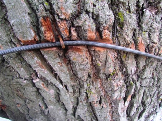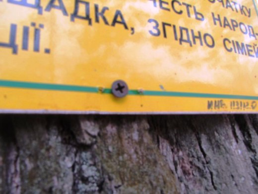 "Табличка на 200-летнем дубе в Краматорском региональном ландшафтном парке напоминает, что это дерево - "живой свидетель смены нескольких исторических эпох". Табличка закреплена шурупами, завинченными в дерево, а сам дуб обтянут тросом, закрепленным гвоздями".