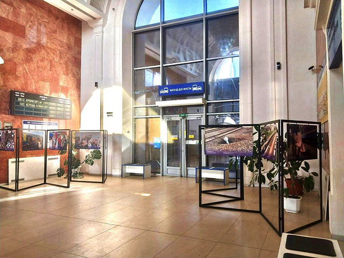 Виставка продовжує розповідати про етапи евакуації українців залізницею на початку повномасштабного вторгнення та про її роль у житті сучасної України.