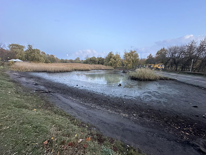 "З весни до осені думали, як виконувати ці роботи, як витратити менше коштів. Спочатку спитали екологів, які нам надали згоду, сказавши, що немає тут ніяких екологічних проблем, качечки зараз вже підросли й роботи виконують майже в кінці жовтня. Качечки були, але вони відлетіли. Тут птахи їли рибу", — уточнив Андрій Безсонний.