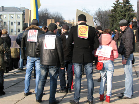 Сегодня, 17 марта, в центре Краматорска снова прошел митинг протеста против планов добычи в регионе сланцевого газа. Нынешний сход граждан отличался не только высокой организацией, но и новой риторикой, где явно появился политический подтекст.