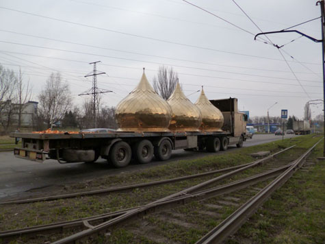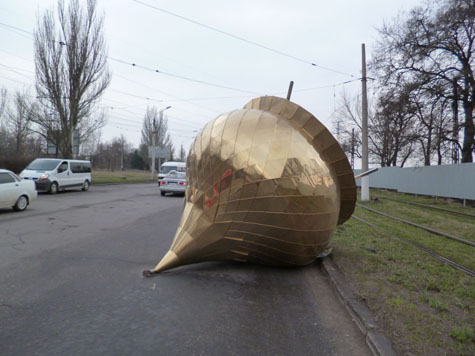 Необычное дорожно-транспортное происшествие случилось сегодня в Краматорске на улице Орджоникидзе. Автомобиль, перевозивший груз для одной изх церквей Константиновки, потерял... купол.