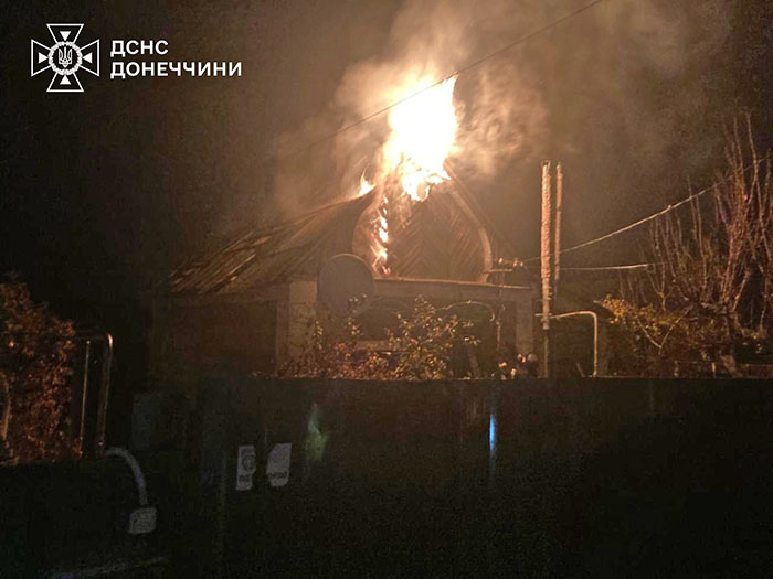 Як повідомляє Головне управління ДСНС України у Донецькій області, вночі російський агресор двічі обстріляв житлову забудову міста. Внаслідок обстрілів виникли пожежі у житловому будинку та господарській споруді за різними адресами.