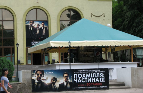 Во всяком случае, теперь идиотское сооружение над бывшим фонтаном, закрывающее фасад кинотеатра, претендует на местную достопримечательность как минимум дважды.