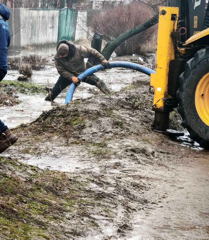Для ліквідації підтоплень задіяно спецтехніку та насосне обладнання. Основне завдання — якнайшвидше відвести воду, очистити проїжджу частину від багнюки та льоду й не допустити подальшого підтоплення.