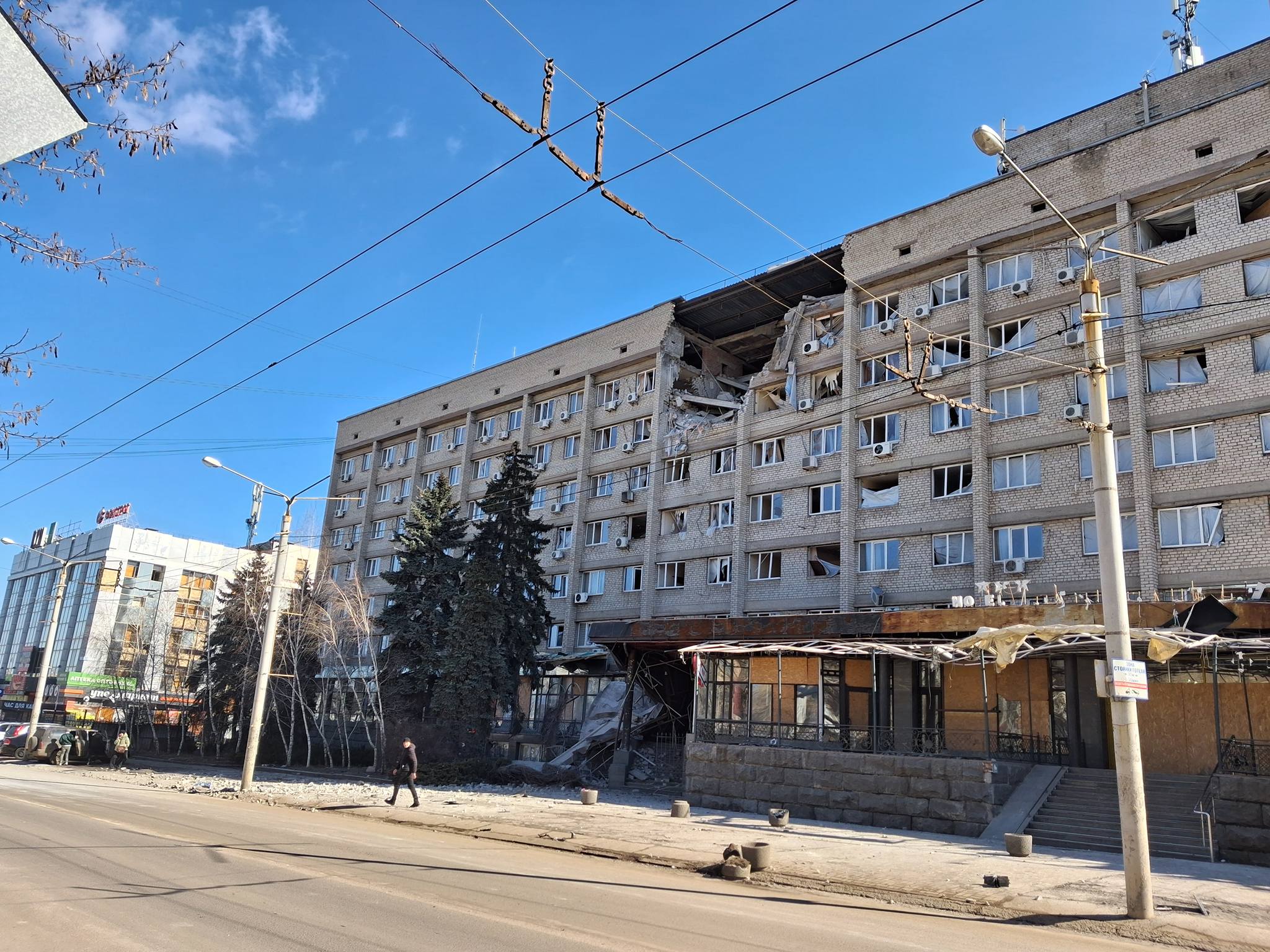 -- о 23:05 - удар БпЛА «Герань-2» по готелю в центрі міста. Пошкоджені сусідні багатоповерхівки та магазини.