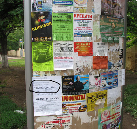 Шикарные объявления заполонили Краматорск, включая специальные коммунальные рекламные тумбы. Некто зазывает взрослых и детей обучаться английскому языку, причем совсем дешево. Предложение роскошное, если бы не одно "но".