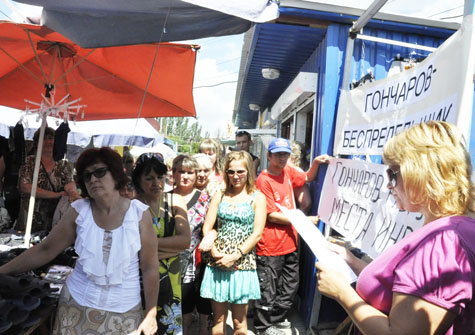 Сегодня на рынке в старой части Краматорска прошла акция протеста предпринимателей, недовольных действиями собственника ЗАО «Строитель» Александра Гончарова.